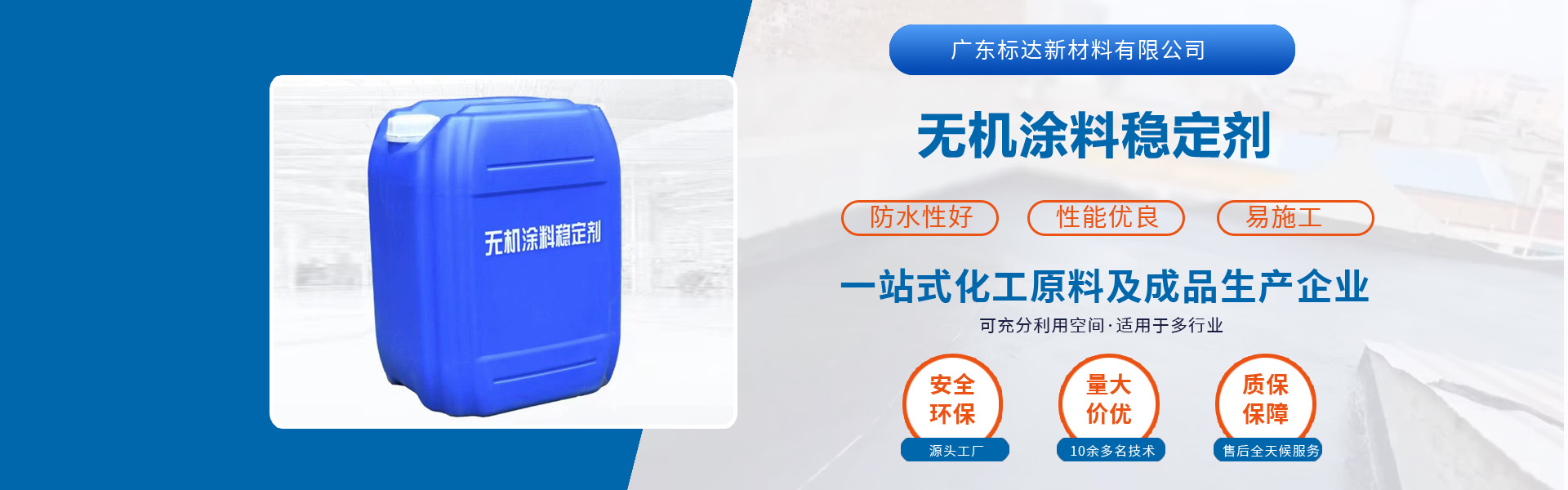 廣東標(biāo)達(dá)新材料有限公司,位于東莞市保利都匯大廈,注冊(cè)資金人民幣1000萬(wàn)元,我們是一家集研發(fā)、生產(chǎn)、銷(xiāo)售、售后為一體化,具備一站式服務(wù)能力的化工原料及成品生產(chǎn)企業(yè)。 公司主營(yíng)產(chǎn)品標(biāo)達(dá)彩砂固色劑、真石漆穩(wěn)定增強(qiáng)劑、無(wú)機(jī)涂料、隔熱保溫涂料、無(wú)機(jī)材料改性穩(wěn)定劑、瓷磚背膠和液體卷材等。我們擁有專(zhuān)業(yè)的化學(xué)化工方向的產(chǎn)品研發(fā)團(tuán)隊(duì),標(biāo)準(zhǔn)化管理的產(chǎn)品加工廠(chǎng),以及完善的售后服務(wù)團(tuán)隊(duì)。 我們本著“質(zhì)量為先、管理為本、服務(wù)為魂”的企業(yè)理念,以品質(zhì)求生存,以?xún)r(jià)格取信任,全力拼搏、開(kāi)拓標(biāo)達(dá)新材料公司的新域。...